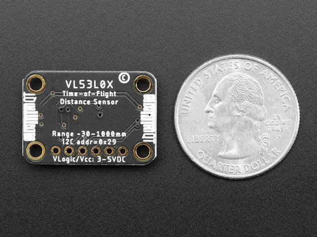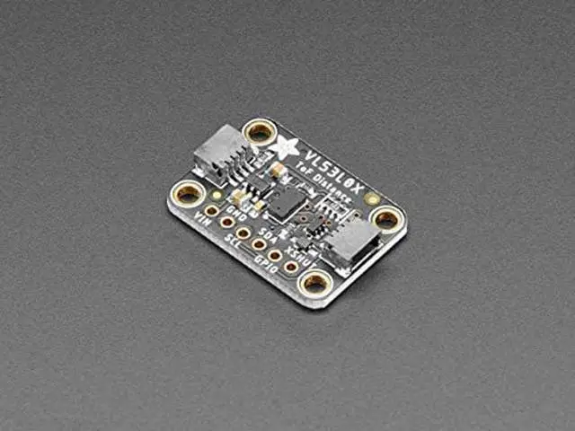 The VL53L0X is a Time of Flight distance sensor like no other you've used! The sensor contains a very tiny invisible laser source, and a matching sensor. The VL53L0X can detect the "time of flight", or how long the light has taken to bounce back to the sensor. Since it uses a very narrow light source, it is good for determining distance of only the surface directly in front of it. Unlike sonars that bounce ultrasonic waves, the 'cone' of sensing is very narrow. Unlike IR distance sensors that try to measure the amount of light bounced, the VL53L0x is much more precise and doesn't have linearity problems or 'double imaging' where you can't tell if an object is very far or very close.
