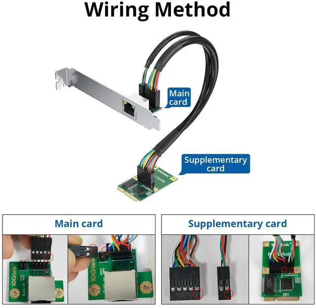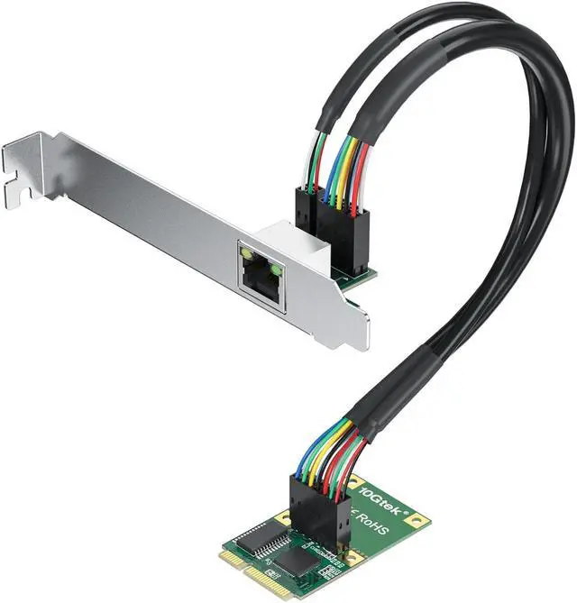 Mini PCIe NIC: Single RJ45 Port support 10/100/1000Mbps and connect Cat5e, up to 100 meters; Mini PCIe Card with LED light, 30-cm cable length. Mini PICe Interface, not for M.2
