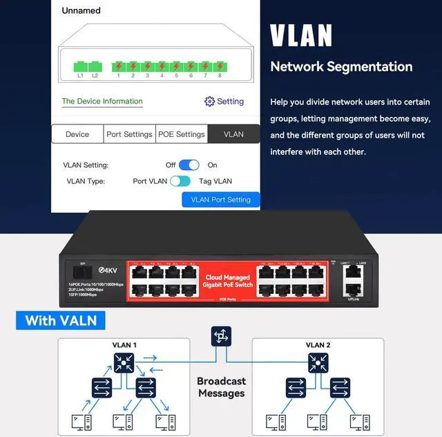 Easy to Set-up And Cloud Managed PoE Switch: Connect devices securely, 19 port visibility, and simple cloud management with the mobile app and your computer; Alerts for connectivity problems and remote troubleshooting tools when needed. One-key to remote PoE function with mobile APP; Remote Access, feel free to Live check and solve the problems with your family or friends via POE Switch App wherever you are.(Please note: When adding a device for the first time, the switch needs to be connected to the Internet and powered on before the device can be activated.)
