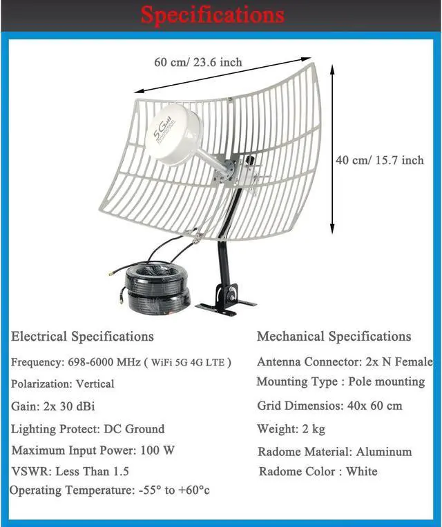 Say Goodbye- Laggy Zoom Calls, Netflix Buffering, And High Ping Gaming! If YouRe Looking For Faster Data Speeds With Your Lte Router, You'Ve Found The Right Product! This Parabolic Antenna Uses 2 Cross Polarized Antennas To Maximize The Reception Of Your Lte Modem. Simply Use The Cable To Connect To Your Hotspot, And Mount Your Antenna Somewhere Outside, Ideally Lower Than The Highest Peak Of The Roof To Enjoy Some Faster Data Rates!