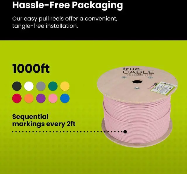 [Easy To Use] Sequential footage marking every 2 ft track remaining cable on the EZ Pull Reel. The internal cable spline fights against kinks and separates wire pairs for cleaner signal and easier termination.