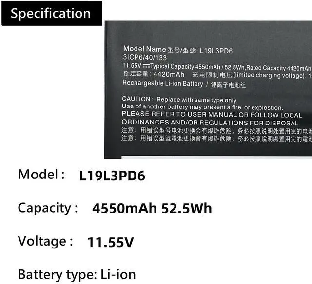Replacement for Part Number L19M3PD6 L19L3PD6 L19C3PD6 L19D3PD6 5B10X49077 5B10X49073 5B10X49075 5B10X49072 L19M3PD6
