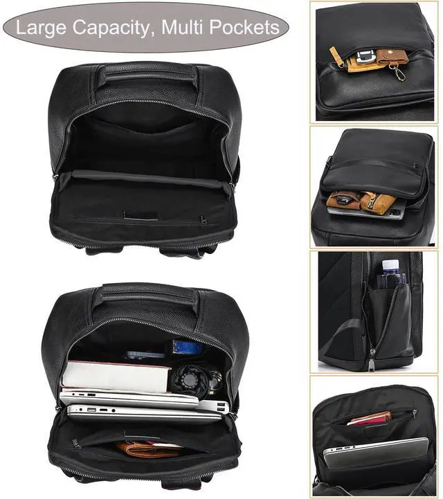 Genuine Leather: The backpack is made of genuine leather and high quality polyester lining. The surface of the leather shoulder backpack is smooth with fine texture, feels good to the touch. It is anti-scratch and durable to use for long term.