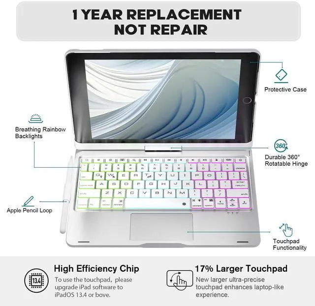 Keyboard case for iPad 10.2inch/10.5inch ONLYCompatible with iPad 9th Generation 10.2-inch 2021 - A2602/A2603/A2604/A2605,iPad 8th Gen 10.2-inch 2020 - A2430/A2270/A2428/A2429 , iPad 7th Gen 10.2-inch 2019 - A2197/A2198/A2200 ,iPad Air 3rd gen 10.5-inch 2019 - A2154/A2152/A2153/A2123 , iPad Pro 10.5-inch 2017 - A1701/A1709/A1852. Note: Please check the Model Number with AXXX on the bottom of the back for your iPad which you can find from aboves before purchasing to prevent size errors (iPad and Pen are not included)