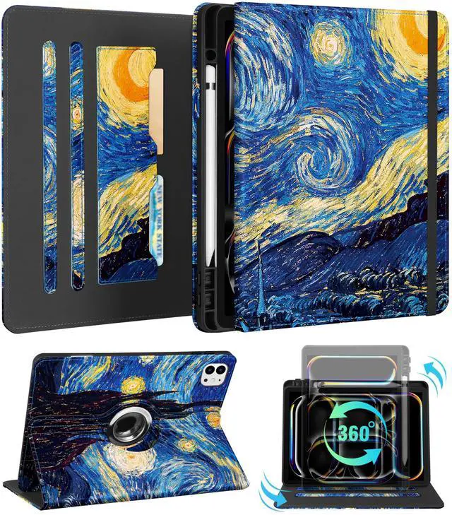 Kidcube for iPad Pro 13 Inch Case M4 2024 - Women Girls Kids Cute Rotating Stand Folio Cover with Pencil Holder & Card Slot Cool Unique Teens Design for iPad Pro 13 Inch Case 2024 (A2925 A2926 A3007)