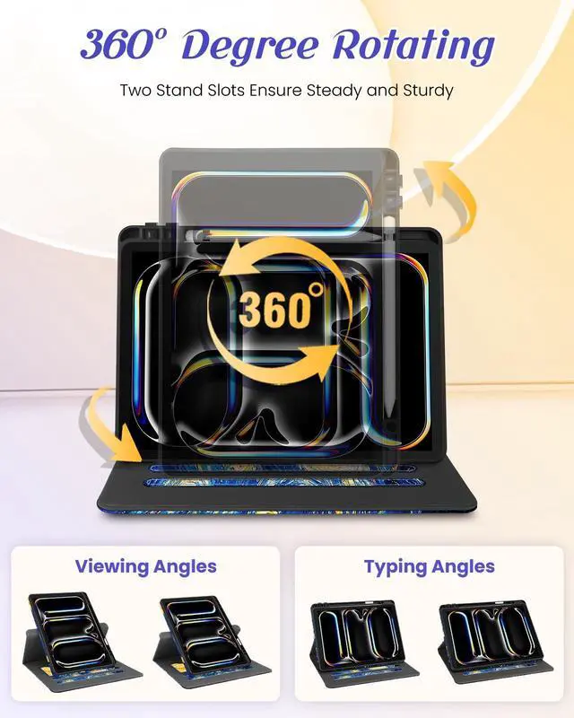 360° Rotating Stand: This for iPad Pro 13 inch case 2024 with an functional rotating stand design, supporting your devices to switch between landscape and portrait orientations. While 2 anti-slip strip design allow for multiple horizontal stand angles for comfortable viewing or typing