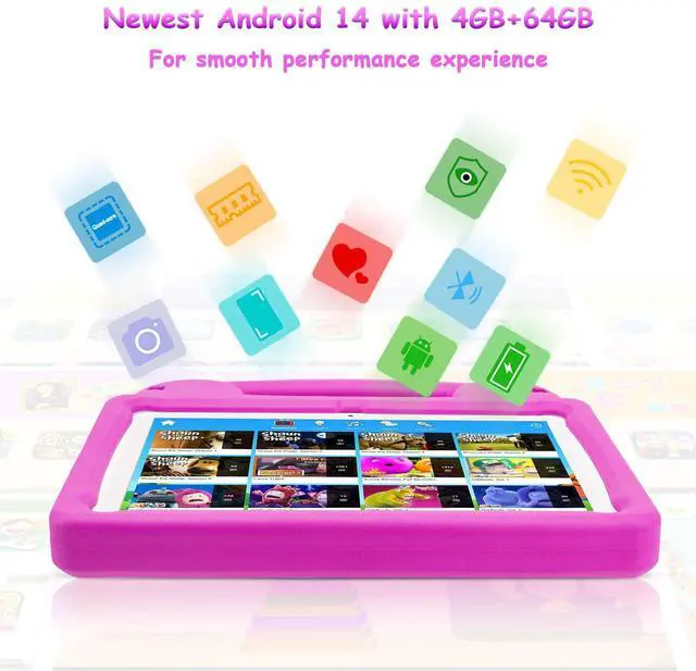[Empowered with 4GB RAM, 64GB ROM, and WiFi 6] Our kids tablet armed with 4GB RAM and a octa-core processor, ensures seamless operation of the android 14.0 system. Th