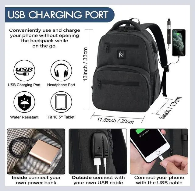 USB CHARGING PORT - For Phone, Vapes & Other Devices. USB interface with built-in cable design, great convenience for charging your electronic devices via connecting your own power bank. CONTEMPORARY STYLISH DESIGN - The mini smell proof backpack has a sleek low-profile design with grey fabric, a sub compartment with mesh side pockets. Its inconspicuous for your privacy. You can store your glass and herb in here safely.