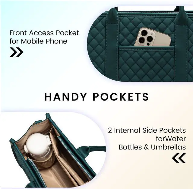 Superior Storage & Smart Organization: This elegantly designed laptop bag for women (Size: 17" x 12.6" x 6.2") offers ample space for all essentials. Its compartments are tailor-made for A4 documents, folders, a 17.3" laptop, and a 14-inch tablet, each protected by sturdy padding. The laptop tote bag's smart internal layout, including a keychain holder and specialized pockets for water bottles and umbrellas, ensures that every item has its place.