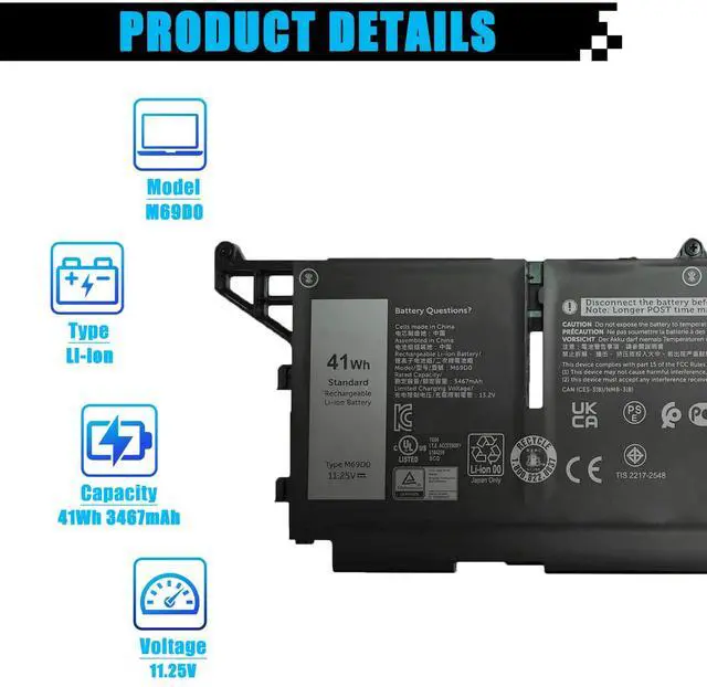Replacement for P/N M69D0 07KRV O7KRV 0H4PVC H4PVC 08WRCR 8WRCR 0Y86WG Y86WG 078FWY .(There are 2 different models 07KRV 58Wh 4-Cell & M69D0 41Wh 3-Cell,Please open the back cover of the laptop before ordering and make sure that the original battery model is consistent with the listing. )