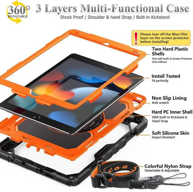 Compatibility: Exclusively designed Shockproof Case for iPad 9th/ 8th/ 7th Generation 10.2 inch (Model includes: A2602 A2603 A2604 A2605 / A2197 A2198 A2200 / A2270 A2428 A2429 A2430) 2021/2020/2019 Released. NOT fits for other Generations iPad. Please confirm the product before purchase