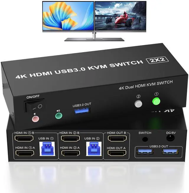 Dual Monitor KVM Switch Support 4K ResolutionThis HDMI USB KVM switch supports up to 4K@60Hz and is backward compati