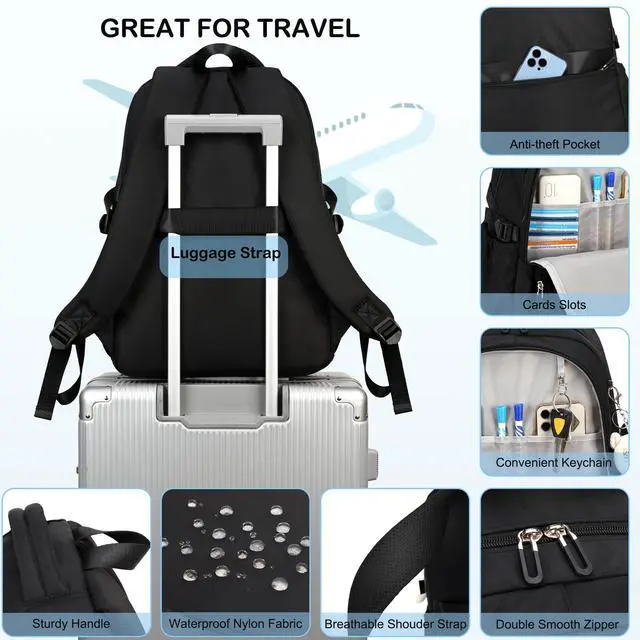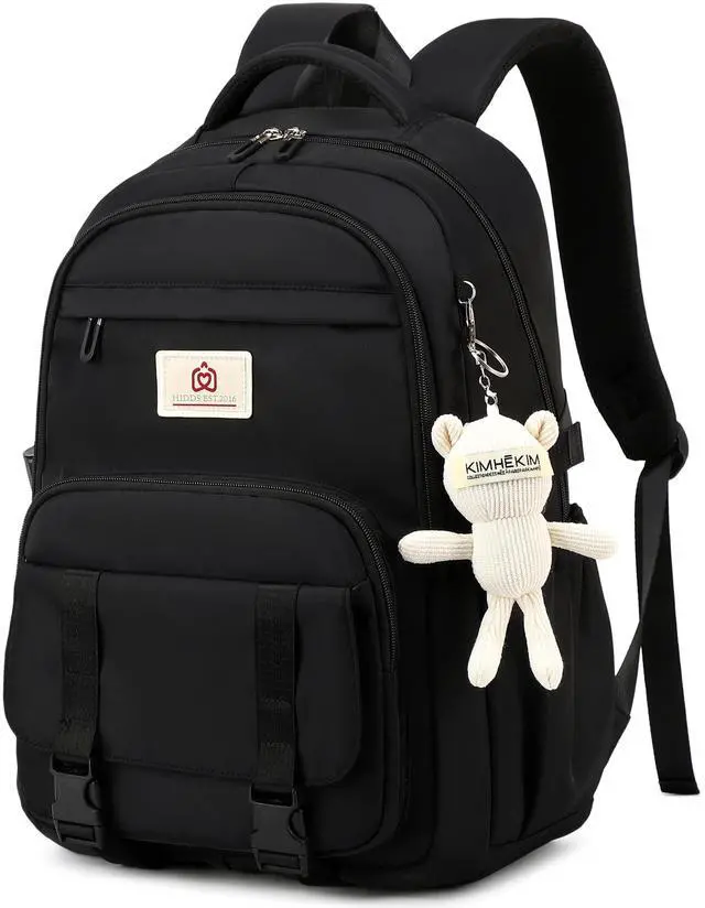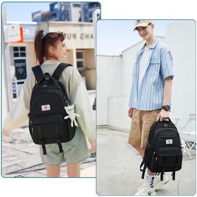College Backpack Laptop Backpacks 15.6 Inch for Men Women Elementary Middle High School Book Bag For Teens Girls Boys Student Anti Theft Travel Daypack Large Bookbags-Black