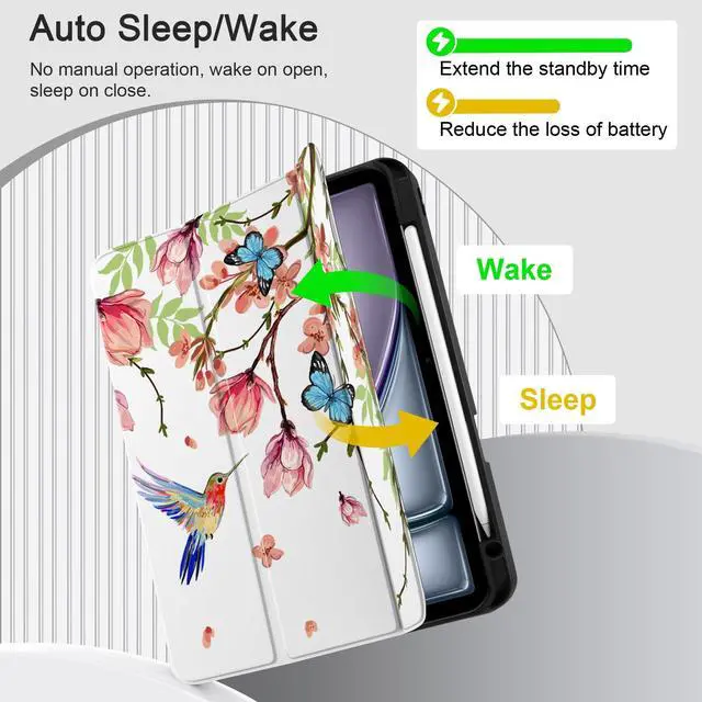 M3/M2 Chip Characteristic: 1. The case is made of premium PU exterior, microfiber lining and soft TPU back cover 2. Case automatically wakes your tablet when opened and puts it to sleep when closed 3. You can easily fold the cover into different positions to create a stand for reading, viewing, typing, or making FaceTime calls 4. Built-in pencil holder, grab your tablet pencil effortlessly whenever you want, easily carry your tablet pencil with your device 5. Easy to Installation and remove 6. Convenient to use all the controls and features