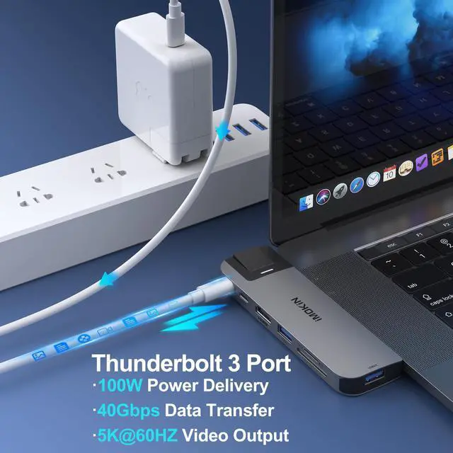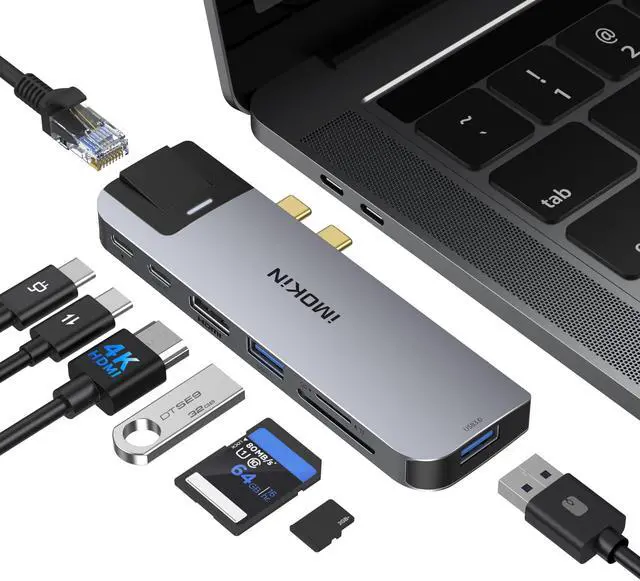 USB C Multiport Adapter Hub Mac Dongle for MacBook Pro/Air with 4K HDMI Port, Gigabit ethernet, 2 USB, TF/SD Card Reader, USB-C 100W PD and Thunderbolt 3