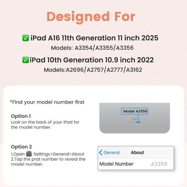 2 in 1 Keyboard Case for 10.9"No Pen included!The keyboard Cover is designed for iPad A16 11th Generation 11-inch 2025 (A3354/A3355/A3356) and for iPad 10.9 10th Gen 2022 (A2757/A2777/A2696).It's Not compatible with any other devices. Please check the model number back bottom of your iPad.