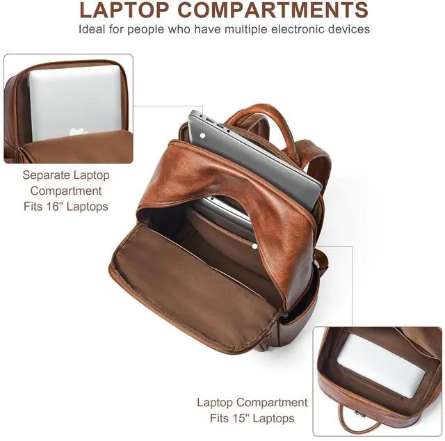 Business Backpack with 2 Laptop Compartments: This laptop backpack women has 2 laptop compartments.One is in the main compartment and can hold a laptop up to 15 inch.The other is a separate,padded compartment for a laptop up to 16 inch,which provides effective protection for your laptop,notebook and iPad.This womens backpack purse is a good choice for people who have multiple electronic devices