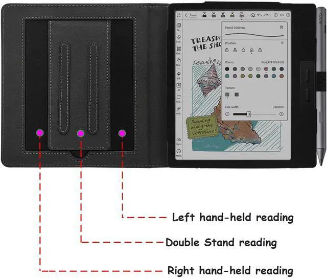 • With Double Stand & Double Hand Strap Double wrist strap and the double foldable stand are cleverly combined, The horizontal and vertical screen supports enable you to handle various use scenarios, double stand keep your hand free for handcrafts or typing or eating. The dual-wrist design allows the left and right hands to hold the BOOX interchangeably, so that you can get a better reading experience in different scenarios.