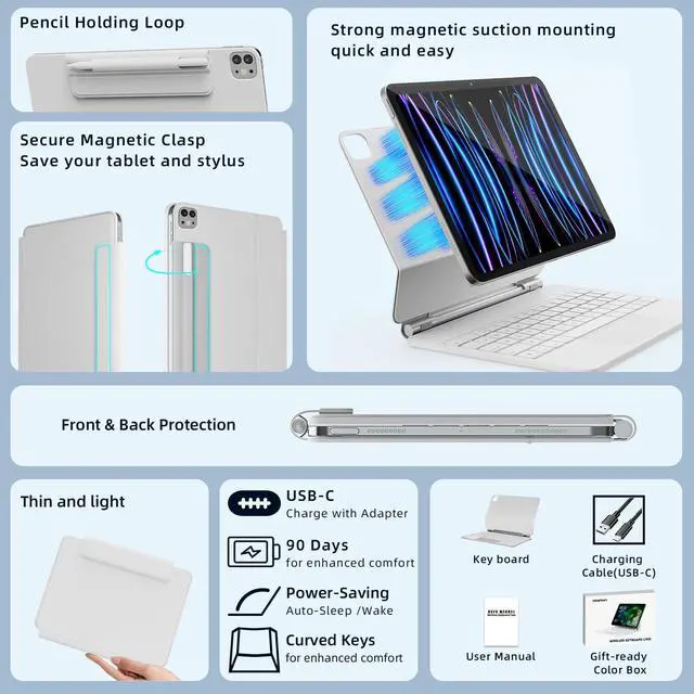 Compatibility: only compatible with iPad Air 11-inch(M3/2025, M2/2024);iPad Pro 11 inch (2022/2021/2020/2018); iPad Air 5th Generation (2022), and iPad Air 4th Generation (2020). Models: (A3266, A3267, A3270, A2902, A2903, A2904, A2316, A2324, A2325, A2072, A2588, A2589, A2591, A2435, A2759, A2761, A2762, A2377, A2459, A2301, A2460, A2068, A2228, A2230, A2231,A1980, A2013, A1934, A1979)