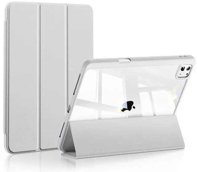 Smartdevil Case for iPad Pro 11-inch 2024 (M4, 7th Gen) with Pencil Holder, Slim Trifold Stand Cover with Clear Hard Back, Anti-Bend Protection, Auto Wake/Sleep, Supports Touch ID Light Gray