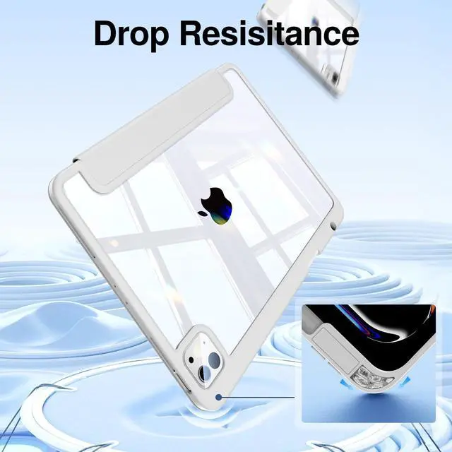 Superior Quality The hard back shell is equipped with a flexible TPU bumper that effectively protects your iPad from daily impacts. A soft microfiber lining on the inside prevents scratches on the tablet surface. The crystal-clear transparent back showcases the Apple icon and lets you personalize your case with stickers or photo inserts.