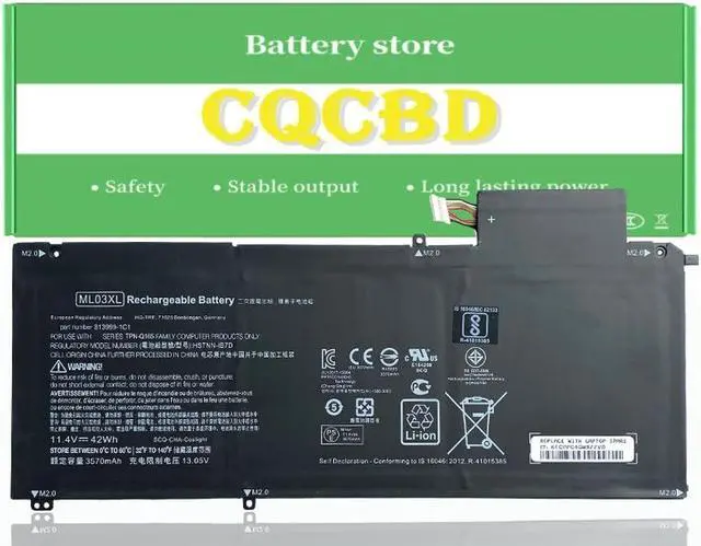 • CQCBD ML03XL Battery for Hp Spectre X2 12-A000 Detachable 12 Spectre x2 12-A001DX 12-A006TU 12-A019TU HSTNN-IB7D ML03042XL 813999-1C1 814060-850 814277-005 HSTNN-IB7D Series HSTNN-IB7D [11.4V 42Wh]