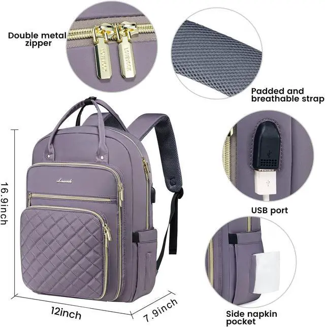 LOVEVOOK Laptop Backpack for Women, Water Resistant Travel Work Backpacks Purse Stylish College Bookbag Business Teacher Nurse Computer Bag with USB Charging Port, Fits 15.6" Laptop