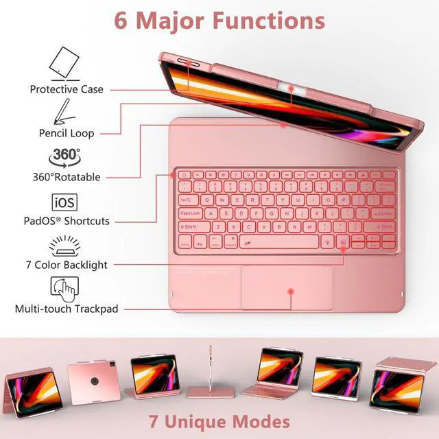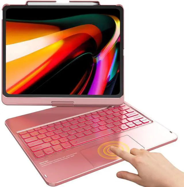 TQQ iPad Air 13 Inch Case Keyboard (M3 2025 / M2 2024), iPad Pro 12.9 (6th, 5th, 4th, 3rd Gen) Keyboard - 360° Rotatable, 7-Color Backlight, Multi-Touch Trackpad, Thin & Light (Pink)