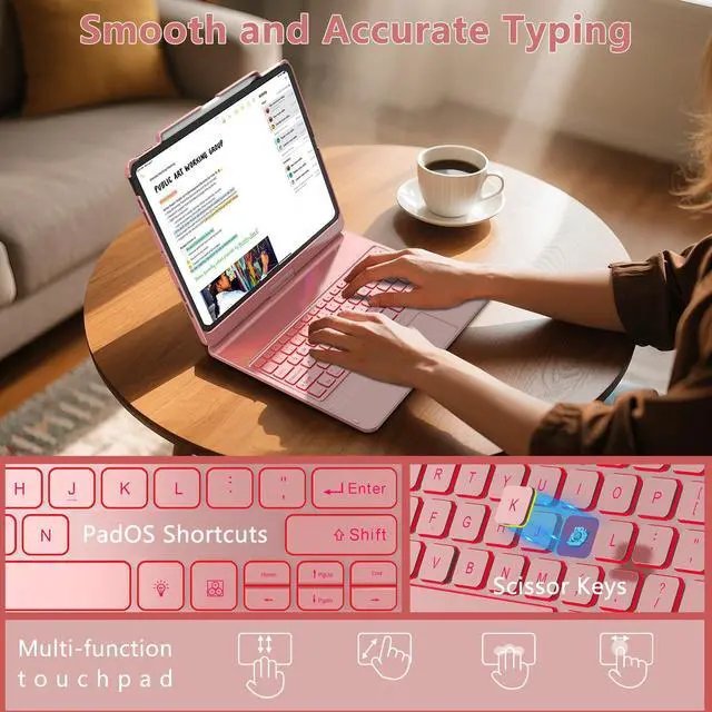 Quick Navigation Trackpad: TQQ for iPad Air 13 inch (M3) 2025 equipped with a smart touchpad that can accurately control and navigate, realize the combination of tablet and computer functions, and enjoy an excellent notebook experience. Control your iPad at multi-gesture. (like tap, swipe, scroll and switch apps), Edit documents, browse the web, and build presentations with unparalleled speed,