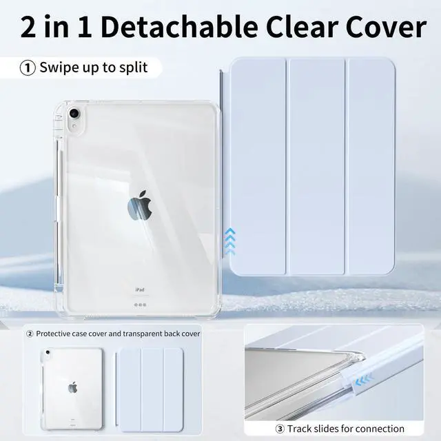 KENKE Hybrid Case for iPad Air 11 Inch M3 2025/M2 2024, iPad Air 5th/4th Generation 2022/2020 10.9 Inch with Pencil Holder, 2 in 1 Detachable Sliding Cover with Hard PC Clear Back Shell, Sky Blue
