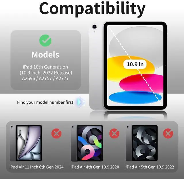 Compatibility: Designed for iPad (A16) 11th Generation 11-inch 2025 (Model Number: A3354 / A3355 / A3356), iPad 10th Generation 2022 10.9-inch (Model: A2696 / A2757 / A2777 ), NOT compatible with any other iPad models. Please be kindly check your iPad back model number before purchasing.