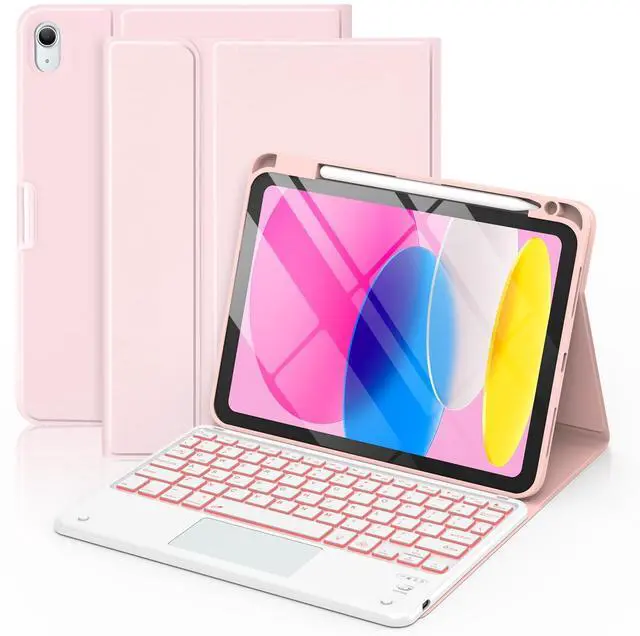 COO for iPad 11th/10th Generation Case with Keyboard, 7 Colors Backlit Wireless Detachable with Multi-Touch Trackpad & Pencil Holder for iPad 11 inch A16 2025/10th Gen 10.9 Inch 2022Light Pink