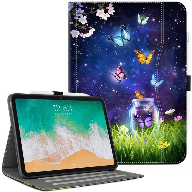 Vimorco Case for iPad (A16) 11th Generation 2025, for iPad 11th/10th Generation Case, Faux Leather Protective Adjustable Cover, Auto Sleep/Wake, Card Pocket with Pencil Holder, Star Butterfly