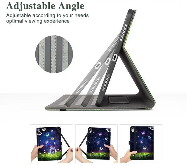 [Precise Cutouts & Adjustable Angle & Smart Auto Sleep/Wake]: Precise cutouts let you access to all ports, speakers, controls and cameras. With three anti-slip stripes design for iPad to sit in to stabilize it, never slips when you have it in a tilting position. Built-in magnetic strip ensure it automatically wakes your device when opened and puts it to sleep when closed to save battery life.
