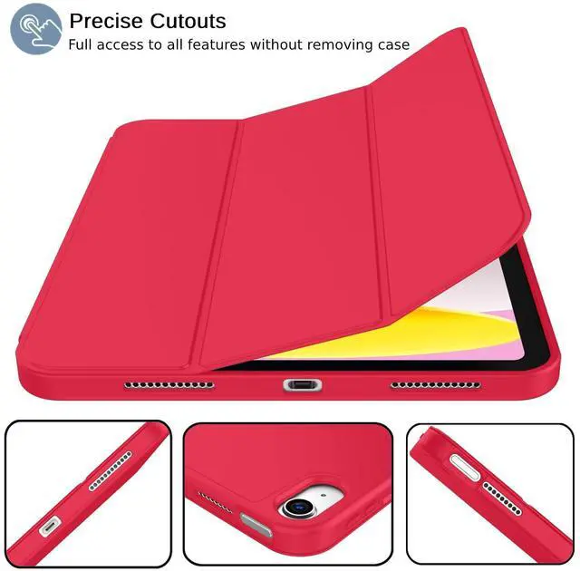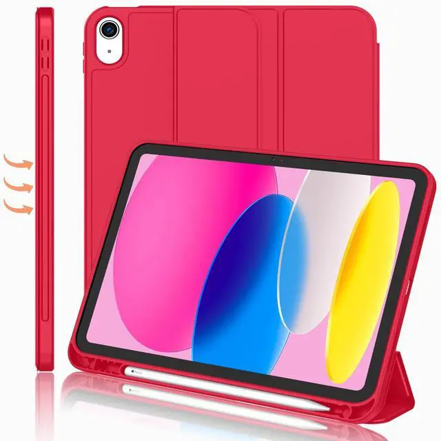 iMieet (A16) Case 11th Gen / 10th Generation Case [11-Inch 2025/10.9 Inch 2022] with Pencil Holder, Trifold Stand Smart Cover with Soft TPU Back,Auto Wake/Sleep(Red)