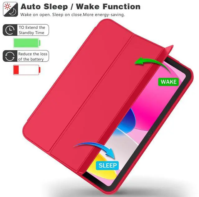 iMieet (A16) Case 11th Gen / 10th Generation Case [11-Inch 2025/ 10.9 Inch 2022] with Pencil Holder, Trifold Stand Smart Cover with Soft TPU Back, Auto Wake/Sleep (Red)