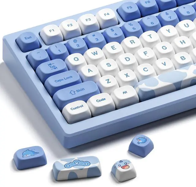 Unique Dolphin Design145 keys in Blue and White, Bringing You a Refreshing Oceanic Experience. These 145keys dolphin themed MOA keycaps, with a blue and white color scheme, embody the fresh essence of the ocean. The dolphin motif runs throughout the design, allowing you to feel the charm of the sea as you use it.