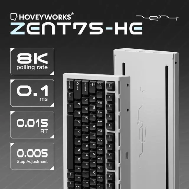 Experience the next generation of gaming keyboards with the Hovey Works ZENT75-HE a high-performance 75% magnetic switch keyboard designed for precision, durability, and style. Built with a full aluminum chassis and powered by the Gateron Jade Pro magnetic switches, it delivers ultra-fast 8000Hz polling and scanning rates, allowing a 0.125 ms response time and 0.01 rapid trigger (RT) for lightning-quick reactions. Its 4-layer PCB, built-in damping system, and 380g silicone base offer incredible stability and HiFi acoustics. Compatible with a wide range of central magnet switches and configurable through a custom web-based driver, the ZENT75-HE sets a new standard for competitive gaming and advanced customization.