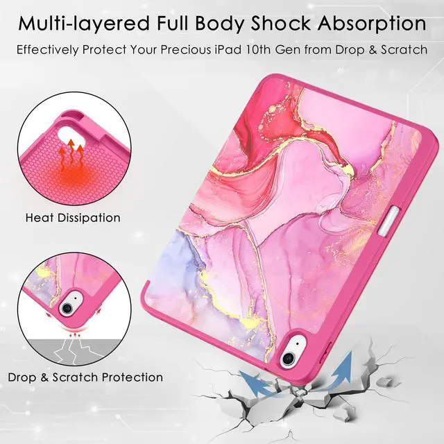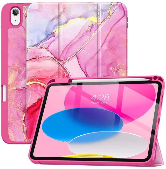 Soke Case for iPad (A16) 11th Generation 2025 11-inch, iPad 10th Generation 10.9 Inch (2022) with Pencil Holder, [Shockproof + Auto Sleep/Wake] Soft Back for iPad 11"/10.9" Cover, Hot Pink Marble