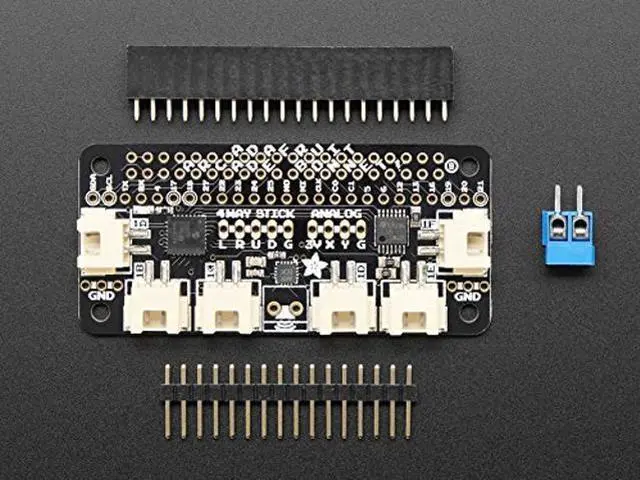 Header breakout and converter for using analog-type joysticks or thumbsticks with potentiometers inside.