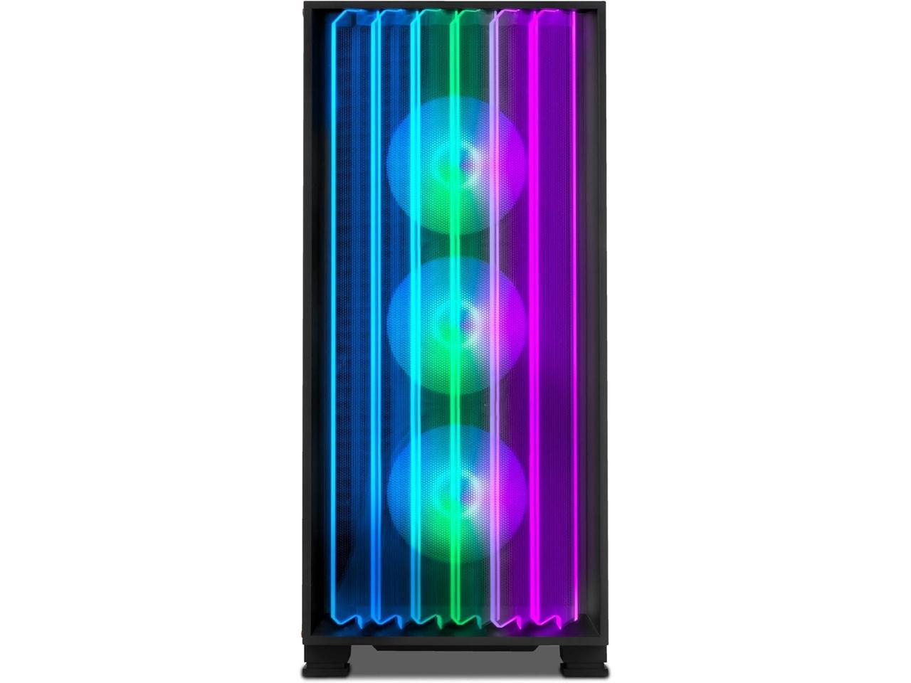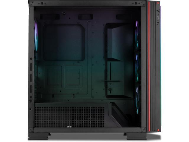 - Customized Design: Customized cable routing, cover, front panel, and PSU shroud. The cable setup keeps the interior organized and visually appealing. The front panel and shroud, designed with aerodynamics, boost airflow for powerful performance.