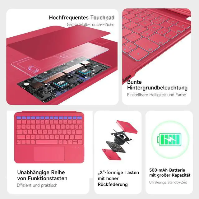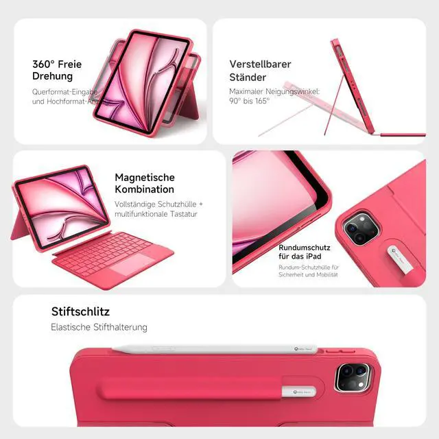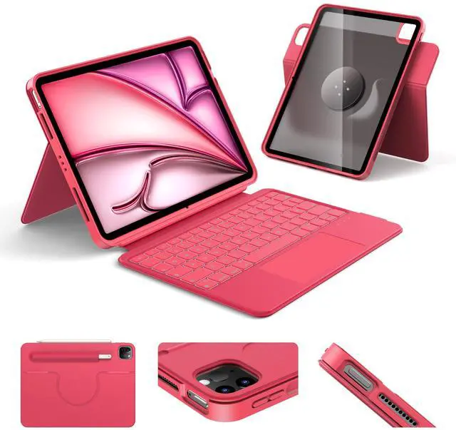 HOU Rotatable Keyboard Case for iPad Air 11 (M3/M2 2025), Magnetic Detachable Case with Keyboard for iPad Pro 11 (4th/3rd/2nd/1st Gen) and iPad Air (6th/5th/4th Gen) with Touchpad, Backlight - Magenta