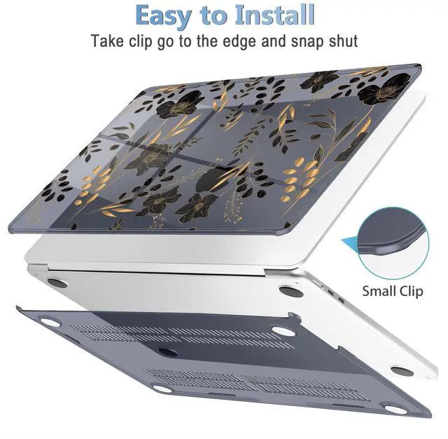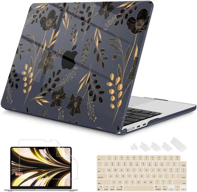 Mektron for 2025-2022 MacBook Air 13.6 inch Case M4 M3 M2Model A3240 A3113 A2681 with Liquid Retina Display Touch IDPrinted Bright Hard Shell Cover for MacBook Air 13.6"G old Floral