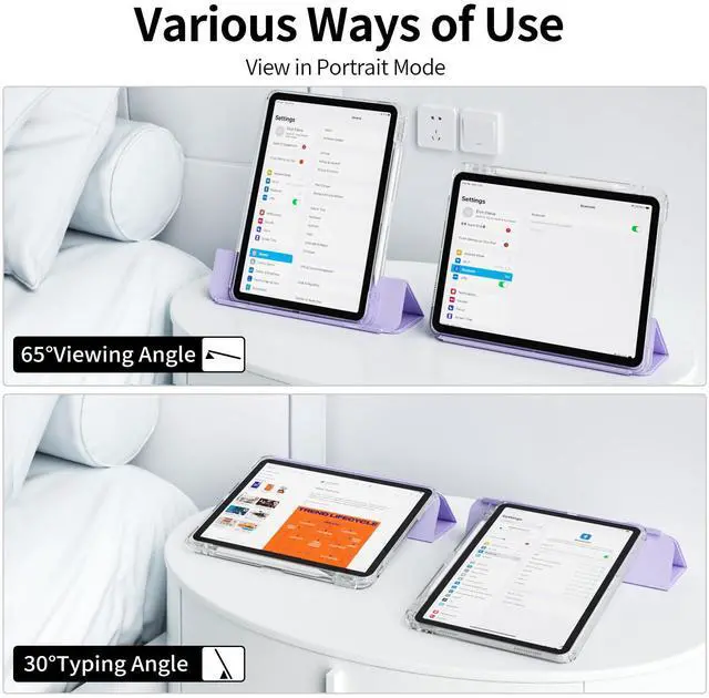 Removable Sliding Stand Design: The case features a detachable three-fold sliding stand that can easily adjust the angle to meet your viewing needs and can be removed for separate use to meet your viewing and typing requirements. The 30° input mode serves as a keyboard stand, while the 65° video mode acts as a screen stand.