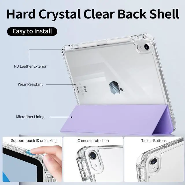 Full Protection: The transparent hard-shell back cover protects your iPad from shocks, drops, and impacts. The surface is soft and silky, providing a comfortable touch to the skin. You can clearly see the iPad logo through the back cover, while it showcases the original beauty of your iPad.