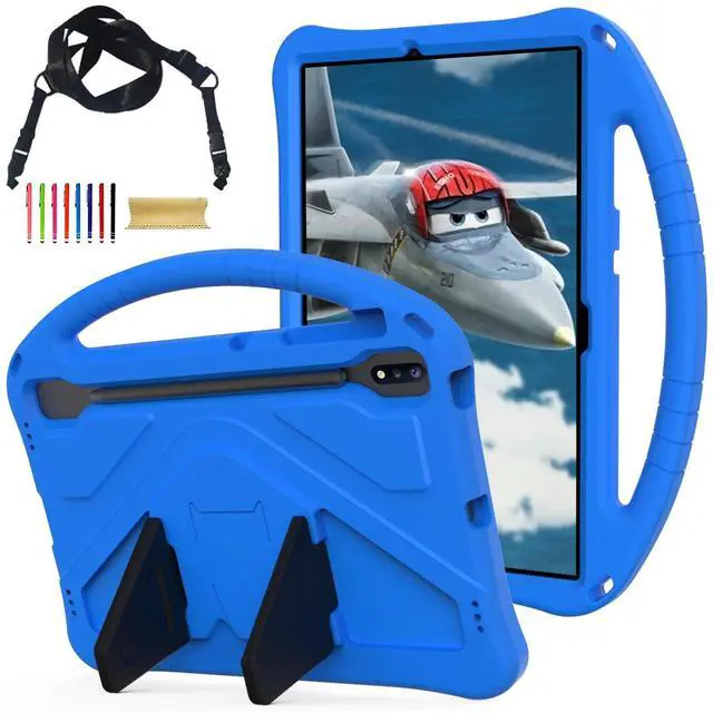 Kids Case for Samsung Galaxy Tab S10+ Plus/S9 FE+ Plus/S9+/S8+/S7+/S7 FE 12.4", Handle Kickstand Shockproof Lightweight Case Cover with Shoulder Strap Kids Friendly for Girls Boys,Blue