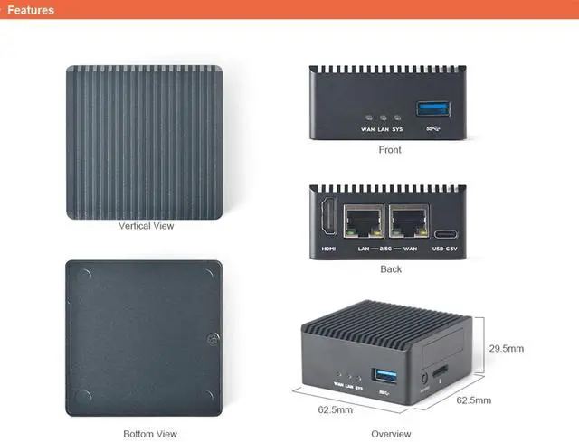 [Light NAS Video Play Router] NanoPi R76S (as R76S) is an open-sourced mini IoT gateway device with two PCIE 2.5G ethernet ports designed and developed. It is integrated with a Rockchip RK3576 CPU. It supports booting with TF cards and works with operating systems such as FriendlyWrt or OpenMediaVault etc. NanoPi R76S is a router featured with multiple Ethernet ports, light NAS and video playing. It is a cannot-miss platform with infinite possibilities for geeks, fans and developers.