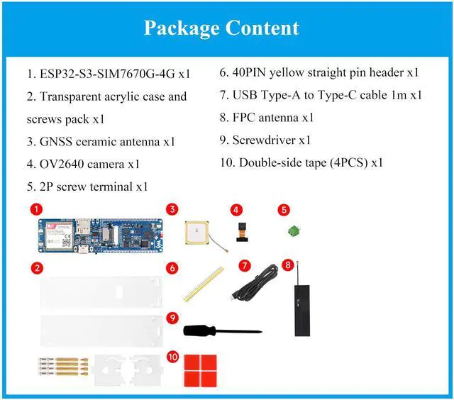 ESP32-S3 SIM7670G 4G Development Board, LTE Cat-1/WiFi/Bluetooth/GNSS Positioning, Global Coverage Multi Band, Onboard Camera/Antenna, Suitable for 4G Portable WiFi, Solar Panel or USB Charging