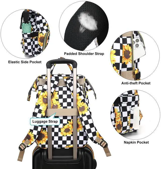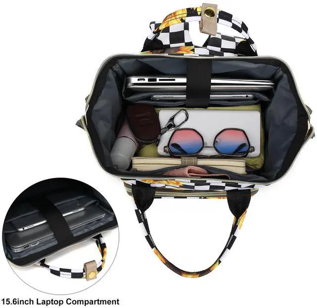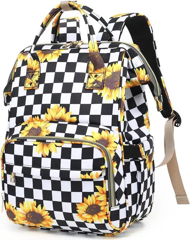 Yusudan Checkered Sunflower Lunch Backpack for Women, Insulated Cooler Work Business Laptop Backpacks Girls School Backpack College Bookbags