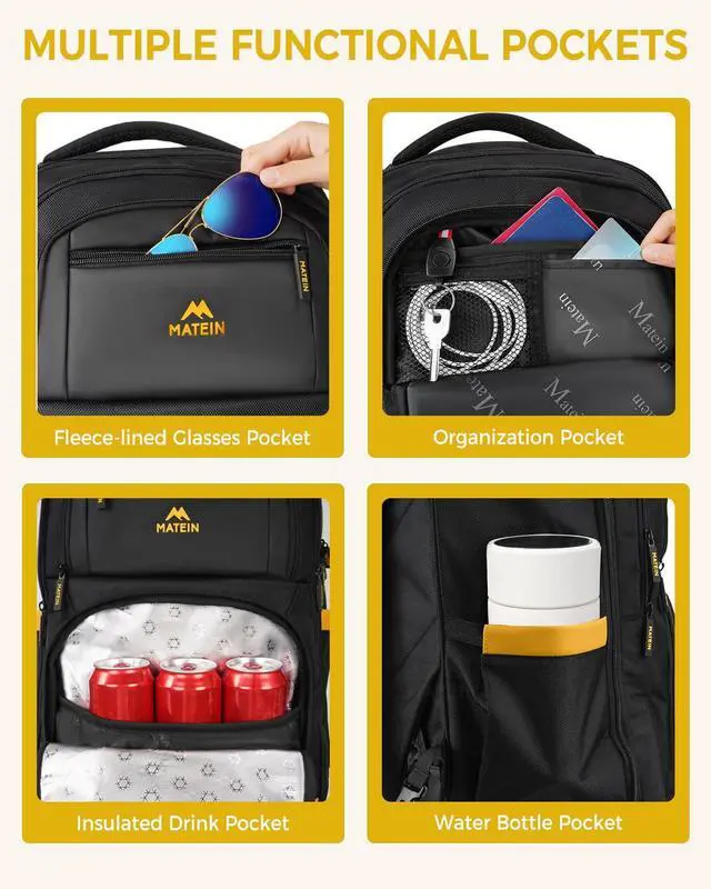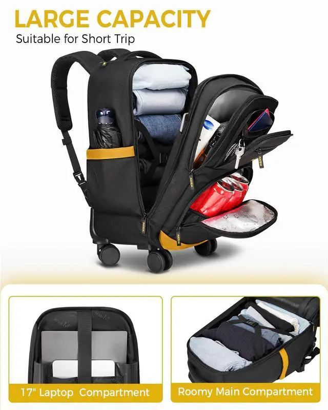 MATEIN Rolling Backpack with 4 Spinner Wheels, 17 Inch College Roller Backpack with USB Charging Port, Water Resistant Rolling Laptop Bag Carry On Luggage, Business Travel Wheeled Bag for Women Men